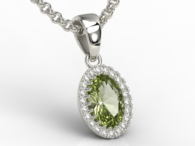 Wisiorek z białego złota z oliwinem i diamentami APW-49B