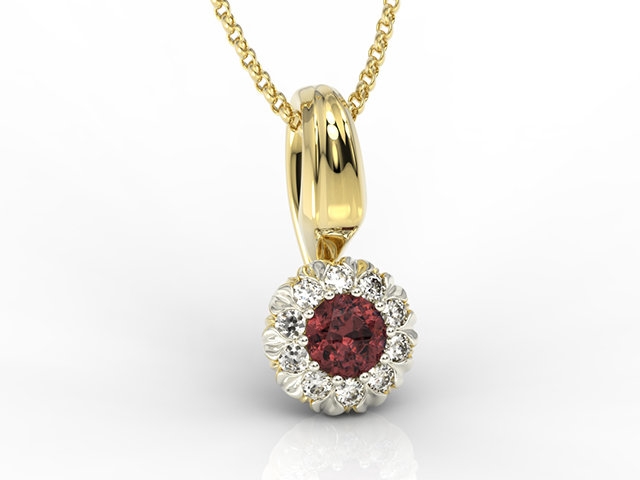 Wisiorek z żółtego i białego złota APW-42ZB z granatem i diamentami.