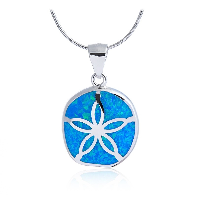 Zawieszka srebrna z niebieskim opalem z kwiatkiem