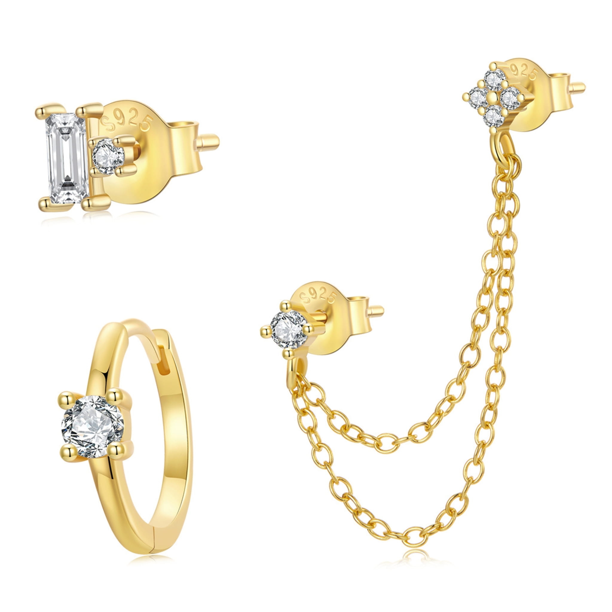 Srebrne kolczyki pozłacane: 3 sztuki. zapięcie: sztyfty, zatrzask materiał: srebro 925 pozłacane kolor kryształów: przezroczyste kształt/motyw: kryształki wymiary kolczyka ze sztyftem: 5,0*4,0 mm wymiary kolczyka na zatrzask: 12,0*3,0 mm wymiary kolczyka z łańcuszkiem: 28,0 mm sztyft całość: 11,0 mm waga: 1,70 g marka: SilverBeads model: K1041 Gratis eleganckie opakowanie. Kolczyki zostaną zapakowane w eleganckie pudełeczko prezentowe. W przypadku zakupu kilku par kolczyków lub zestawów kolczyki-bransoletka, naszyjnik kolczyki zostaną one zapakowane razem do jednego większego pudełka. Jeśli kupujesz biżuterię dla kilku osób i potrzebujesz dodatkowych pudełeczek lub woreczków satynowych znajdziesz je w naszej ofercie.
