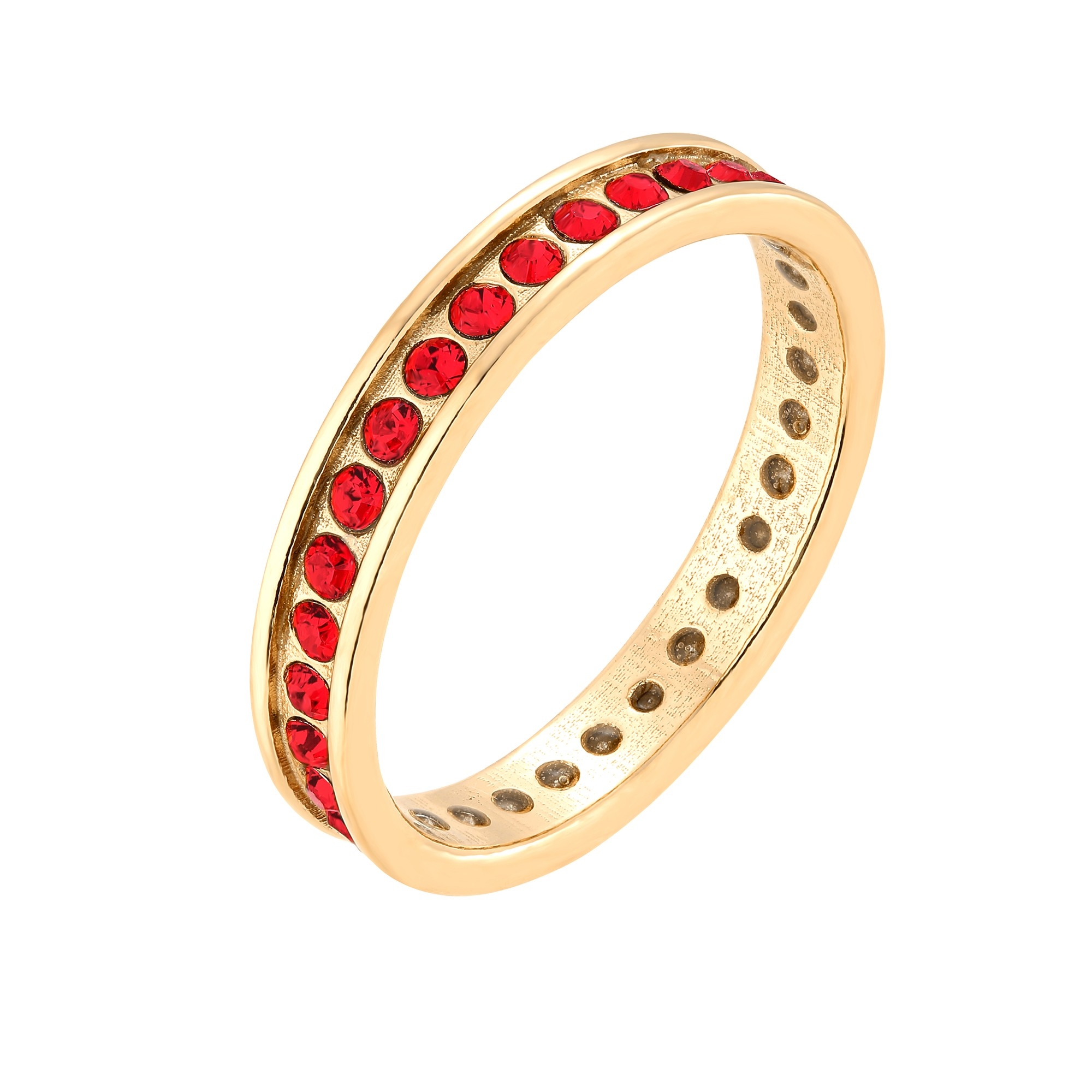 Złota obrączka z kryształami Preciosa w kolorze czerwonym Light Siam. Wykonana ze srebra 925 powlekanego 24 karatowym żółtym złotem.