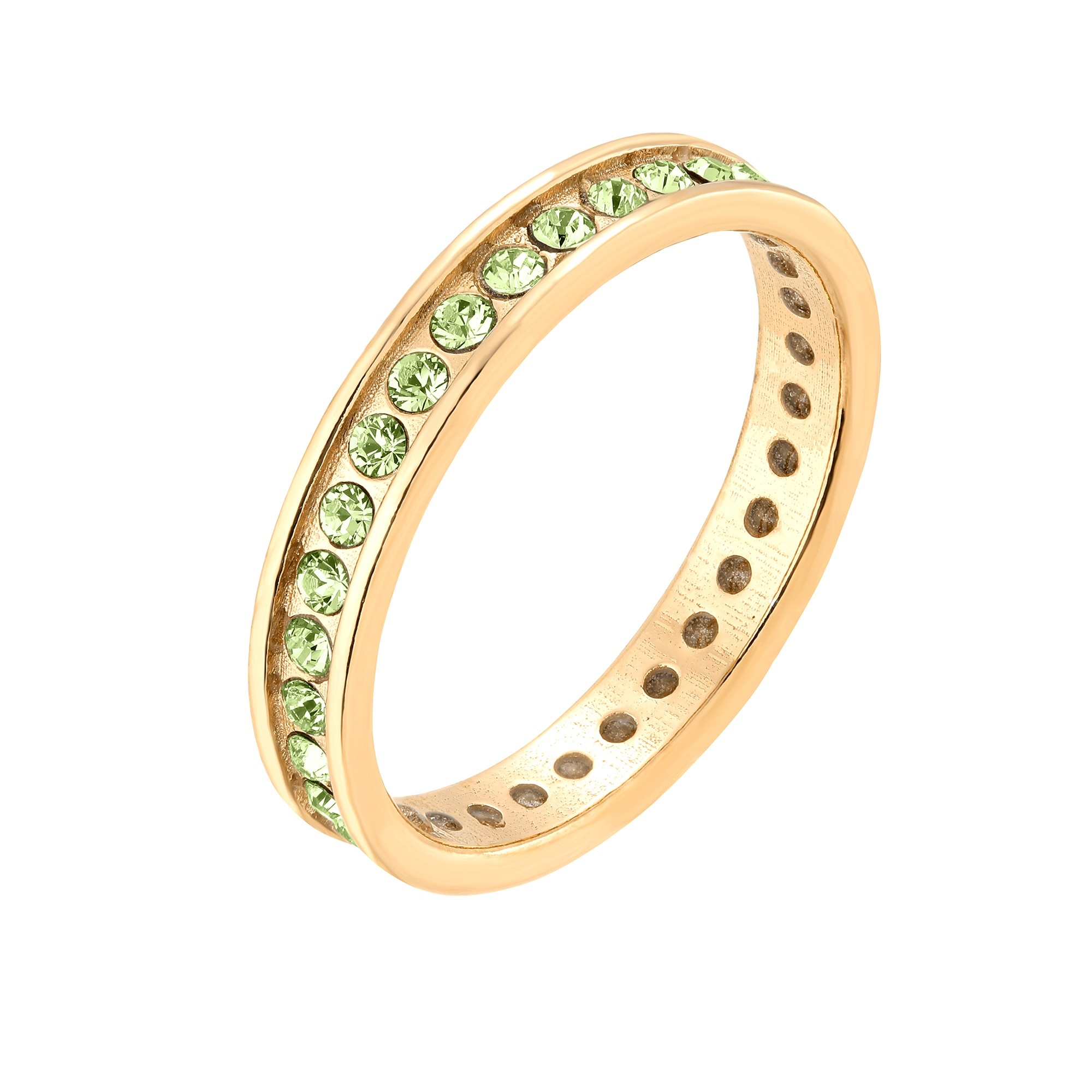 Złota obrączka z kryształami Preciosa w kolorze zielonym Peridot. Wykonana ze srebra 925 powlekanego 24 karatowym żółtym złotem.