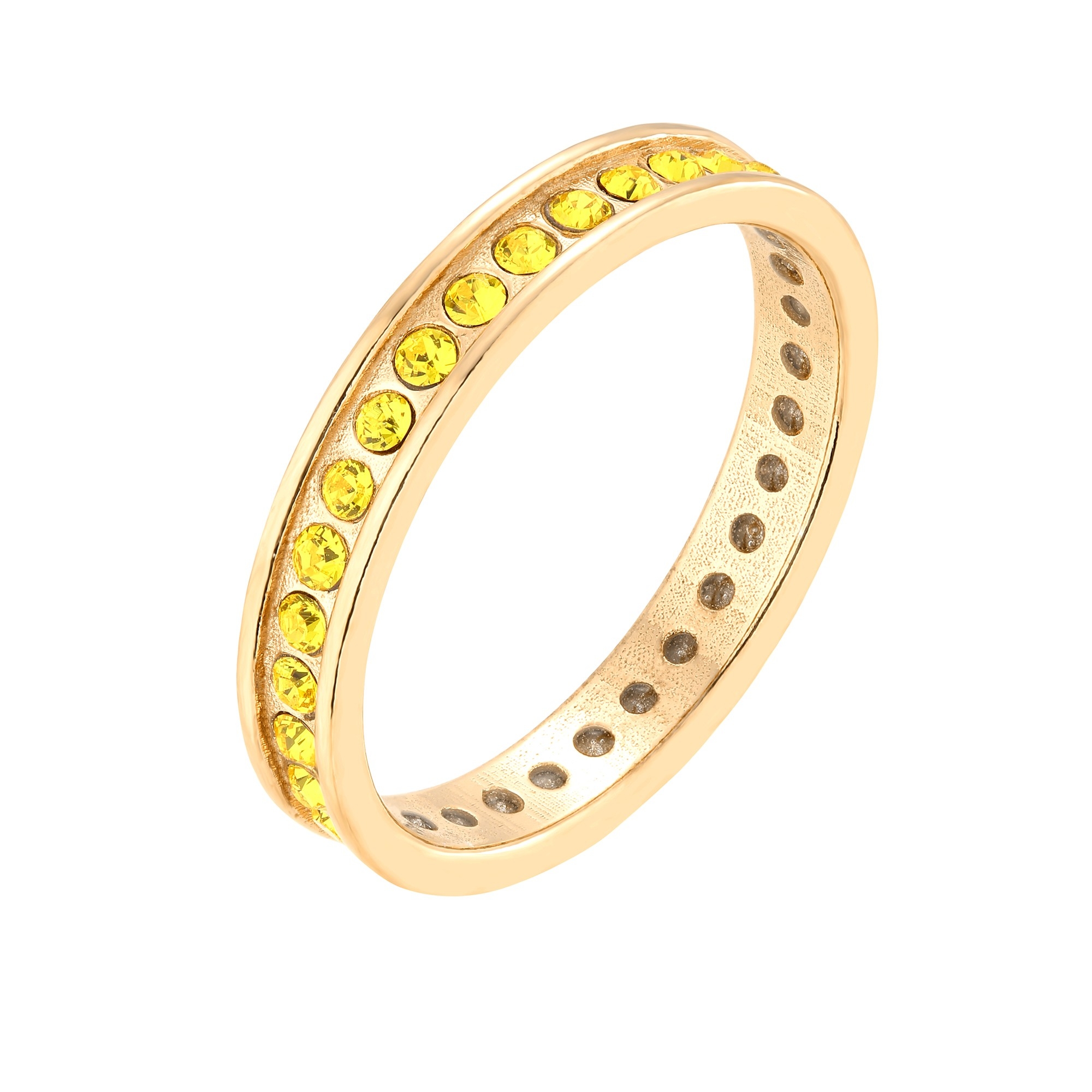 Złota obrączka z kryształami Preciosa w kolorze żółtym Light Topaz. Wykonana ze srebra 925 powlekanego 24 karatowym żółtym złotem.