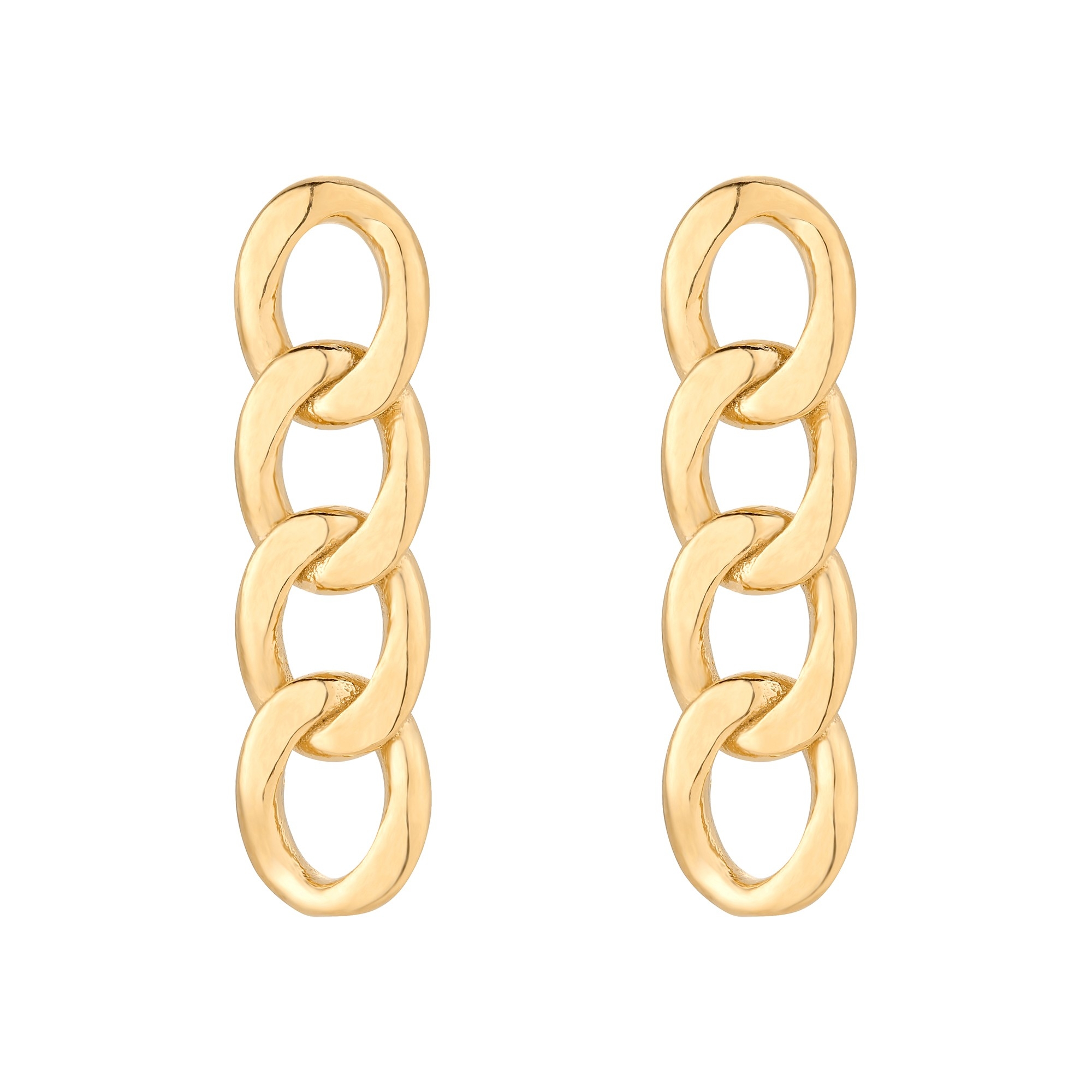 Złote kolczyki łańcuchy. Całość wykonana ze srebra 925 powlekanego 24 karatowym żółtym złotem. Zapinane na sztyft. Kolczyki posiadają zapięcia (baranki).