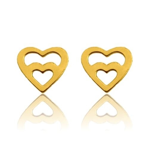 Kolczyki w kształcie serc wykonane ze srebra 925 powlekanego 24 karatowym złotem. Zapinane na sztyft. Kolczyki posiadają zapięcia (baranki) ze srebra 925 powlekanego 24 karatowym złotem.