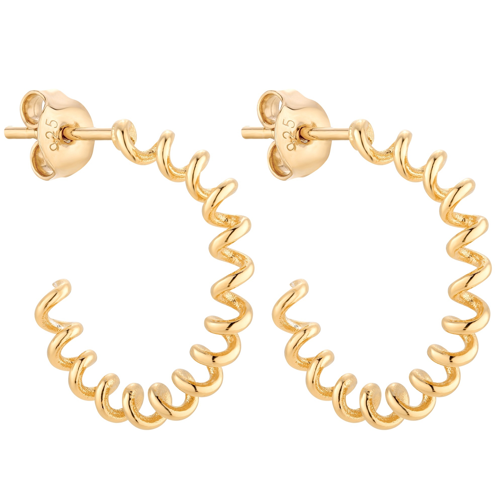 Złote kolczyki sprężynki. Całość wykonana ze srebra 925 powlekanego 24 karatowym żółtym złotem. Zapinane na sztyft. Kolczyki posiadają zapięcia (baranki).