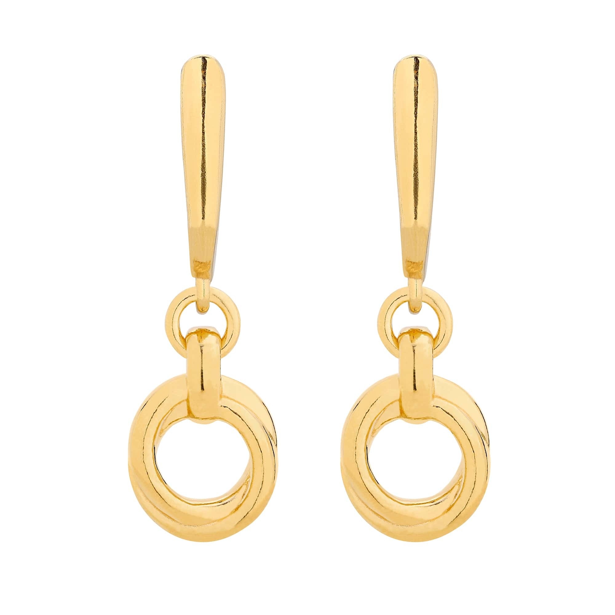 Złote kolczyki z oponkami. Zapinane na bigle angielskie. Całość wykonana ze srebra 925 powlekanego 24 karatowym żółtym złotem.