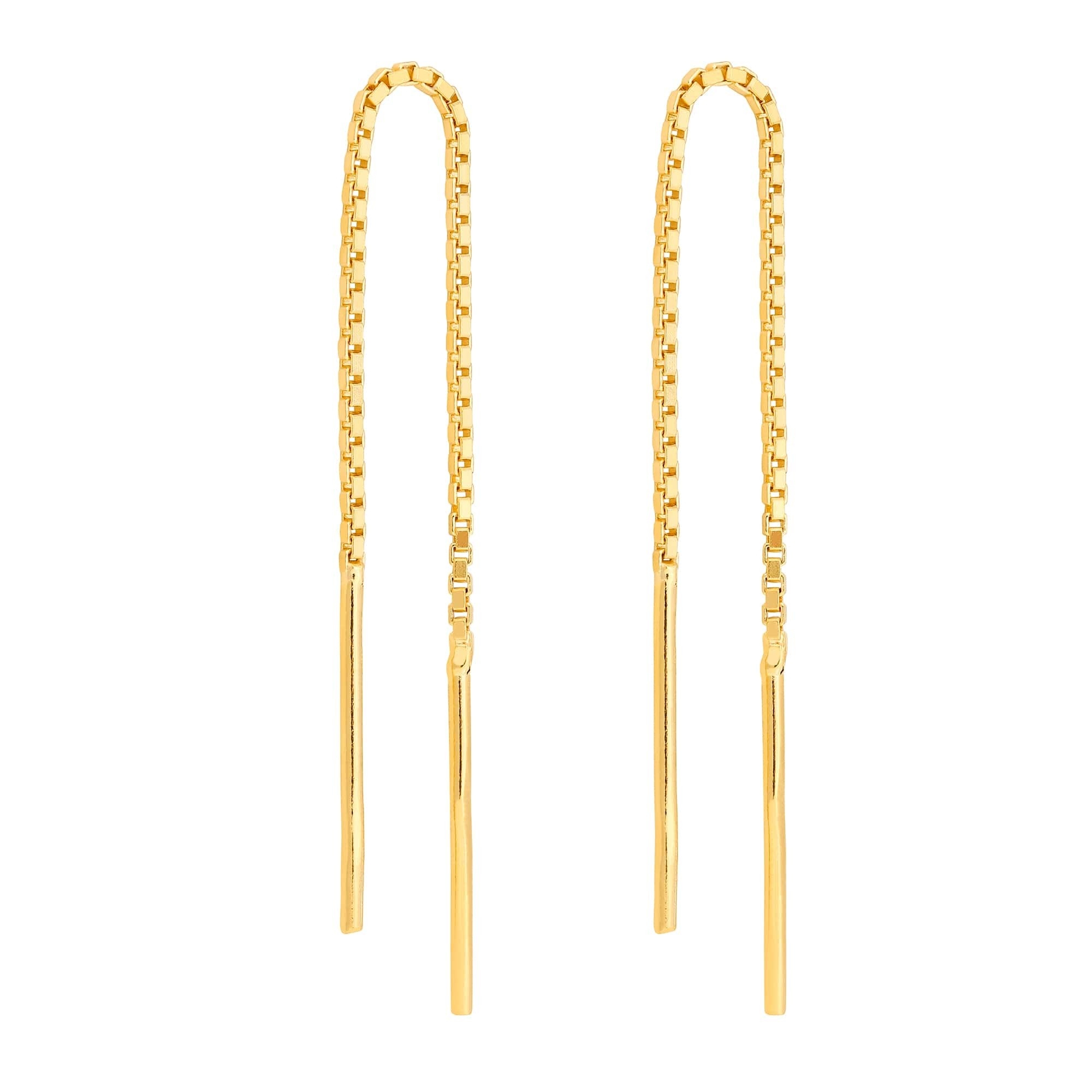 Złote przewlekane kolczyki. Całość wykonana ze srebra 925 powlekanego 24 karatowym żółtym złotem.