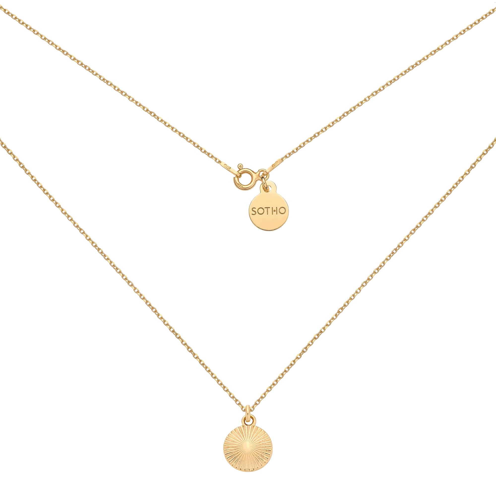 Złoty naszyjnik z kółeczkiem oraz z logo marki. Całość wykonana ze srebra 925 powlekanego 24 karatowym żółtym złotem.